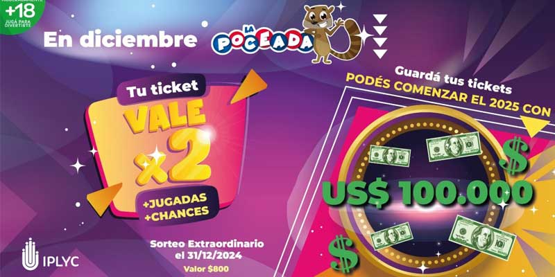 Es por eso que desde el IPLyC instan a los apostadores a resguardar los cupones no premiados, confeccionados entre el 25 de noviembre al 31 de diciembre. Durante este período tendrán una doble oportunidad: participar del sorteo tradicional (pozo acumulado) y con el mismo ticket conservado, soñar con empezar el 2025 con los 100 mil dólares del sorteo extraordinario.
